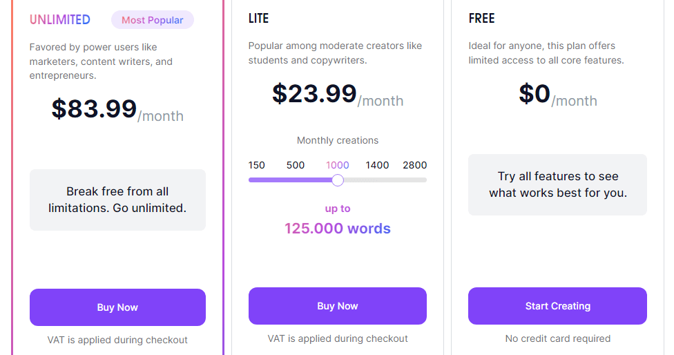 Experience the pinnacle of content creation with TextCortex's Unlimited plan. Unlock a world of limitless possibilities for your marketing, sales, and website copy needs. Say goodbye to restrictions and hello to boundless creativity. With unlimited creations, custom personas, knowledge bases, and more, you'll have the power to revolutionize your content effortlessly. Don't miss out on this exclusive opportunity to supercharge your productivity and storytelling. Join the ranks of marketers, content writers, and entrepreneurs who are already reaping the rewards of TextCortex's Unlimited plan. Break free and soar to new heights – get started today!